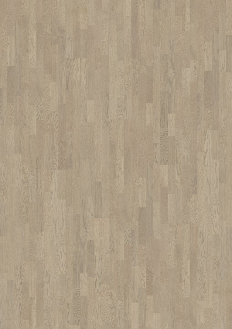 Tato třílamelová mořená dubová podlaha Dub Twilight z kolekce Lumen má teplé zemité tóny v kombinaci s kamenně šedými odstíny. Každé prkno je pečlivě kartáčováno, aby vynikl přirozený charakter dřeva. Povrchová úprava ultramatným lakem zvýrazňuje přirozené barevné variace a vytváří dojem čerstvě řezaného dřeva. Tím se také účinně eliminují odlesky a zároveň je podlaha chráněna před každodenním opotřebením.